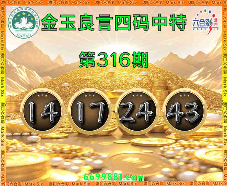 316期:  ♣️『金玉良言』  ♣️四码中特 ♣️【14.17.24.43】开:24